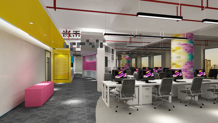 辦公區(qū)域的設(shè)計(jì),設(shè)計(jì)師在其中以點(diǎn)綴的手法,將色彩融入其中,一則可以融合整體的色彩,二則更加貼切于企業(yè)品牌。