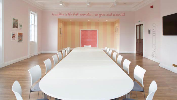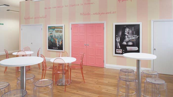 本次為化妝品公司辦公室裝修設(shè)計(jì)項(xiàng)目,設(shè)計(jì)師在于客戶交流的過程中,不斷聽到客戶對于“笑”的理解,因?yàn)樵诳蛻艨磥硇θ菔亲詈玫幕瘖y品,正所謂笑一笑十年少,設(shè)計(jì)師也是女性,因此受到感染最為直接,故此設(shè)計(jì)師在設(shè)計(jì)中以熱情、創(chuàng)造、革新為驅(qū)動力,以求打造出與企業(yè)理念相融的辦公格局。