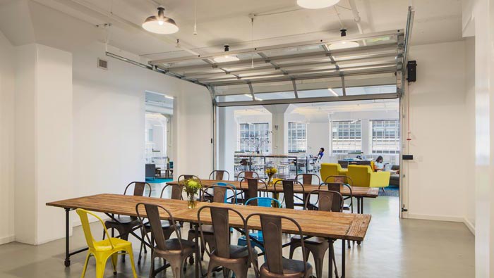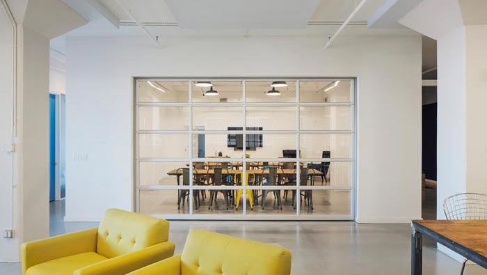交流區(qū)域的設計:此處的設計與會議室的設計有些類似,由于此處位于辦公區(qū)域的后方,設計師希望讓空間更加多樣化,一個小小的轱轆就解決了這個問題,在使用時直接推出來,在使用后直接收起來,方便、快捷,同時也為企業(yè)預留了更多的活動空間。