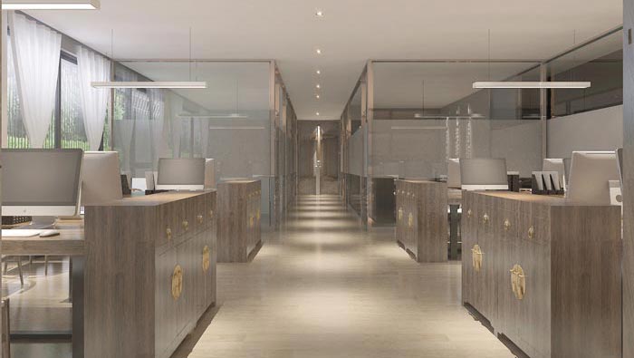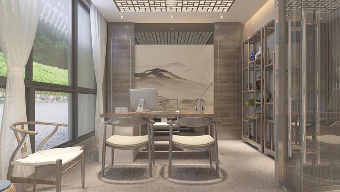 本次中式風格辦公室裝修設計案例講解到此結束,設計師在設計中,充分結合了室內(nèi)結構與室外景色的雙重優(yōu)點,讓室內(nèi)在一定程度上做為室外的延續(xù),增加內(nèi)部空間的自然屬性與中式風格進行有效的結合。