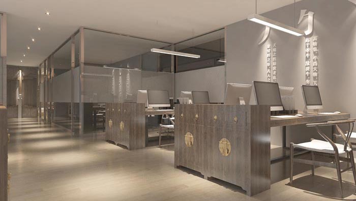 本次為中式風格辦公室裝修設計項目,本次設計面積為250平方,設計師在設計的時候,首先就是到實地進行考察,然后與客戶進行交流與溝通,在雙方的溝通中了解客戶的需求,并在同時結合現(xiàn)場的具體情況給出相對應的設計方案構想,此方案設想來自室內(nèi)結構與室外環(huán)境的雙重結合。