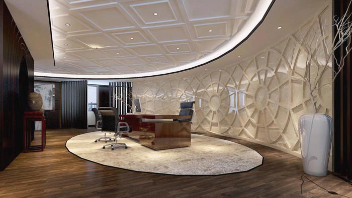 董事長(zhǎng)辦公區(qū)的設(shè)計(jì):此處是董事長(zhǎng)辦公的區(qū)域,給人的第一感覺(jué)就是霸氣、大氣,這也是董事長(zhǎng)想要的效果,空間格局設(shè)計(jì)也十分有意思,大班臺(tái)、地毯、兩株插枝、風(fēng)水?dāng)[件四樣相互搭配組成了一個(gè)空間,這真是不可思議,這本身就說(shuō)明簡(jiǎn)單到極致本身就是不簡(jiǎn)單。