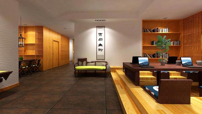 辦公區(qū)域的設計:企業(yè)是一群志同道合的青年聚集而成,每一個人都有自己的理想與抱負,但在設計師看來千里之行始于足下,故此在與客戶交流的時候,重點提出關(guān)于心境成長的重要性,這也受到了客戶的贊同,故此設計師以中式+禪意的模式對辦公區(qū)進行了融合設計,讓大家可以在辦公的同時不斷的磨練自己的心境。
