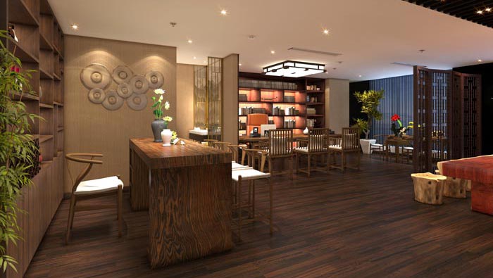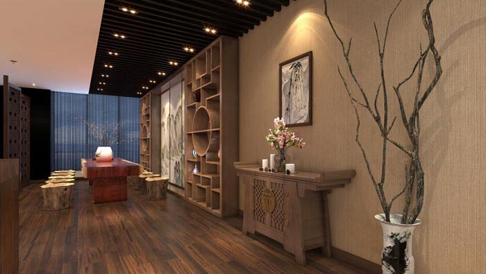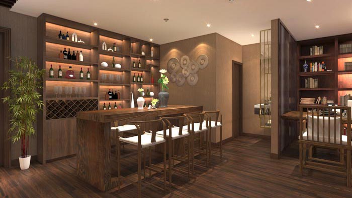 吧臺的設(shè)計:此處是空間的進(jìn)門處,設(shè)計師將此處設(shè)置成吧臺,目的就是為了在情感上拉近與客戶之間的關(guān)系,在吧臺的設(shè)計中設(shè)計師融合了中式的座椅,讓人有一種錯覺就是仿佛彼此之間認(rèn)識很久一般,以此讓對方在交流中慢慢放下戒心,為下一步的合作提供良好的基礎(chǔ)。