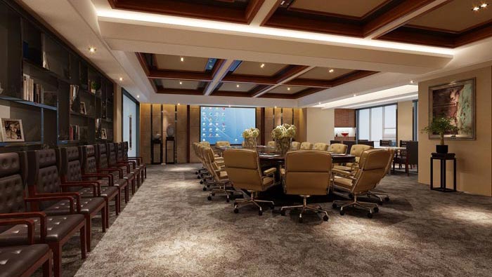 大型會議室的設(shè)計:此處主要是為了企業(yè)內(nèi)部與商業(yè)交談所設(shè),目的一來是為了展現(xiàn)企業(yè)的實力,二來也是打造一個清靜的會議空間,此會議室是一個集成的空間,既滿足會議的開展,也設(shè)置了休息區(qū)和交流區(qū),目的就是希望為會議的順利開展起到輔助作用。