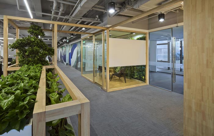 科技公司辦公室過(guò)道設(shè)計(jì):綠植雖然代表這綠色、活力,但是在室內(nèi)也不能任由其自由的成長(zhǎng),所以設(shè)計(jì)師也為他們立了規(guī)矩,物有規(guī)矩、人也有規(guī)則,如此二者方能秋毫無(wú)犯,又相互配合。