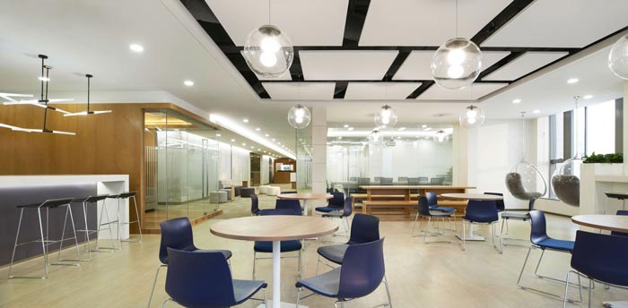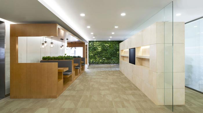 汽車租賃公司辦公室共享空間設計:共享空間位于空間的中心區(qū)域,通過此處可以到達空間的任何區(qū)域,此處相當于空間的過渡區(qū)域,在這里可以四通八達的通向空間每一個區(qū)域。