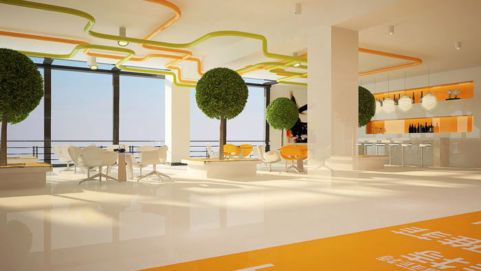 前臺(tái)的設(shè)計(jì),設(shè)計(jì)師在設(shè)計(jì)的時(shí)候,對(duì)空間采用極簡(jiǎn)的設(shè)計(jì)手法,在設(shè)計(jì)師看來(lái)越是簡(jiǎn)潔的空間對(duì)于人的視覺(jué)越有吸引力,同時(shí)設(shè)計(jì)師采用白色讓空間向四周散開(kāi),以此擴(kuò)張空間的視覺(jué)效果,橘黃色重點(diǎn)在于突出整個(gè)空間的聚集點(diǎn)。