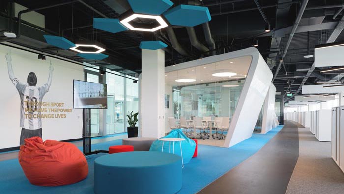 本次為運動用品制造商廠家辦公室裝修設(shè)計項目,設(shè)計師在設(shè)計的時候,首先就是與業(yè)主進行了深層次的交流,在交流的時候設(shè)計師希望了解的是企業(yè)的文化與理念,以此為起點為企業(yè)打造適合未來發(fā)展的辦公空間,在設(shè)計師看來設(shè)計不僅僅是要看眼下,最重要的是著眼未來。