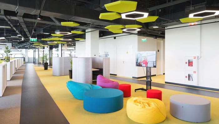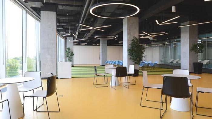 休息區(qū)域的設(shè)計:設(shè)計師在設(shè)計的時候,將其與培訓(xùn)區(qū)域合為一體,在設(shè)計師看來培訓(xùn)區(qū)域不會天天用到,故此設(shè)計師希望為此處帶來活力,在此處給人的第一感覺就是放松,這樣的感覺在如今的時代甚是難得,設(shè)計師希望讓員工在此處與大自然融為一體,進入那夢寐以求的靜心狀態(tài)。