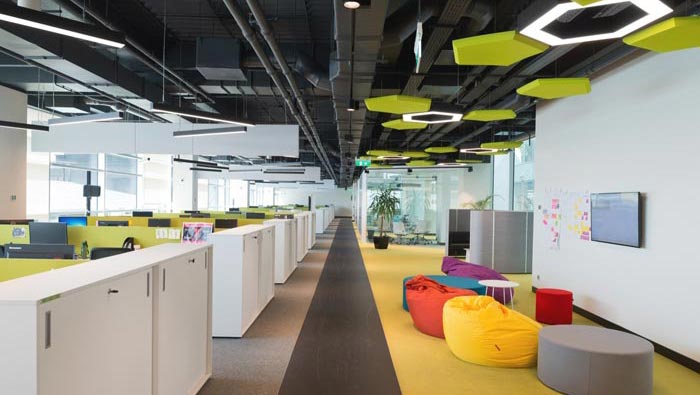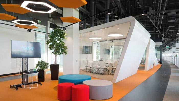 辦公區(qū)域的設(shè)計:設(shè)計師在設(shè)計的時候,將辦公空間采用開放式的設(shè)計手法,在設(shè)計師看來開放式有其不可替代的優(yōu)勢,在設(shè)計的同時設(shè)計師又利用辦公桌+隔斷將其分離成一個小小的空間,在開放的同時為員工預(yù)留足夠的私人空間,將開放式空間的優(yōu)勢發(fā)揮到極致。
