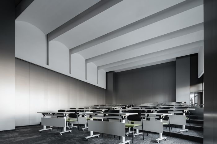 蘭天機械的園區(qū)主要分為廠區(qū)、宿舍樓和綜合辦公樓。綜合辦公樓共有九層,涵蓋企業(yè)接待、日常辦公、會議、健身休閑等多項功能。每層樓都有不同的布局和功能。第一層主要是接待大廳和大報告廳,提供高效的會議和商務接待服務;第二至四層則是設有大型會議室和健身房、閱讀室、母嬰室等多功能場所,可供員工休閑和活動使用;第五至八層則是辦公區(qū)域,分為多個辦公單元,為企業(yè)各職能部門提供適合的辦公空間。整座辦公樓不僅具有高品質的設施和服務,而且也為員工提供了舒適的工作環(huán)境,是一個充滿活力和創(chuàng)新的辦公空間。