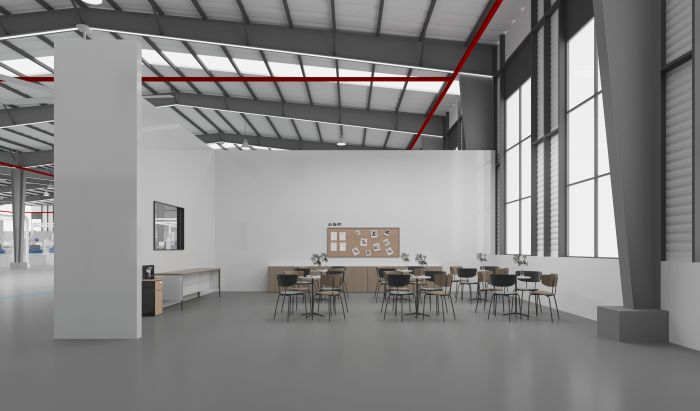 我們受到邀請對園區(qū)的門廳、餐廳、廠區(qū)和幾個獨立辦公室和接待空間做了設計。