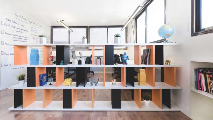 儲藏、展示區(qū)域的設(shè)計:設(shè)計師在設(shè)計的時候,希望實現(xiàn)一個簡潔、層次分明的空間,故此設(shè)計師在展示隔斷的選擇中,采用色彩各異隔斷來劃分空間,在設(shè)計師看來這樣可以為空間增添色彩的魅力,這樣的設(shè)計讓空間有了色彩的點綴,讓整個空間看起來更加有魅力。