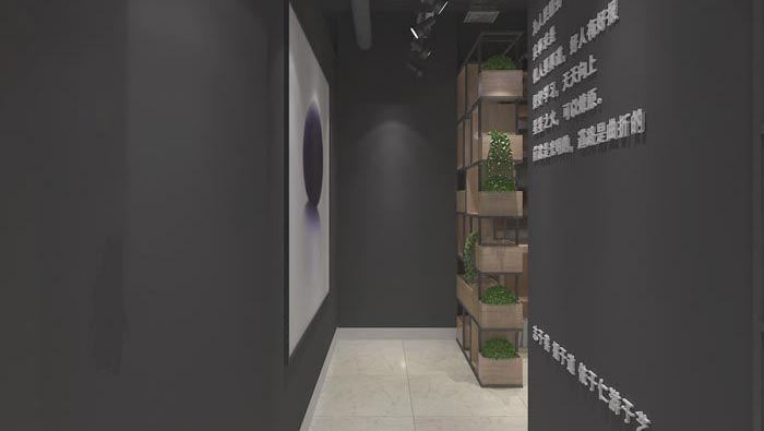 接待區(qū)域的設計:此處安置與進門區(qū)域與辦公區(qū)域之間的過渡空間,因為空間的面積本身就十分有限,故此軟裝的搭配也需要相應的斟酌,而且在設計師眼中此次設計不在多、在于精,也只有如此才能與整個空間相融,大有大的好處、小有小的魅力。