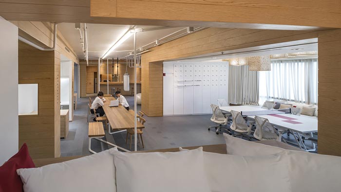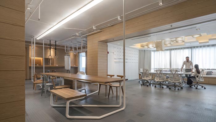 IT公司辦公室辦公區(qū)設計:固定辦公區(qū)與活動辦公區(qū)相鄰而處,這樣的布局方式就是希望讓員工有多個辦公區(qū)域,辦公區(qū)不固定在一起,就是希望讓員工自己主導自己的工作,這樣的辦公效率事半功倍。