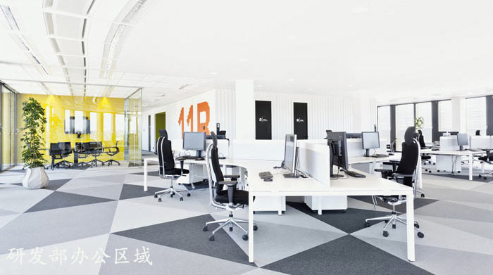 研發(fā)部與創(chuàng)意部的設(shè)計,設(shè)計師在設(shè)計的時候,希望打造一個創(chuàng)意無限的辦公空間,整個空間以不規(guī)則的排列方式對空間進(jìn)行設(shè)計,不規(guī)則本身就是一種平衡,設(shè)計師希望通過這種不規(guī)則的精神來激發(fā)員工的創(chuàng)新精神。