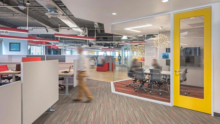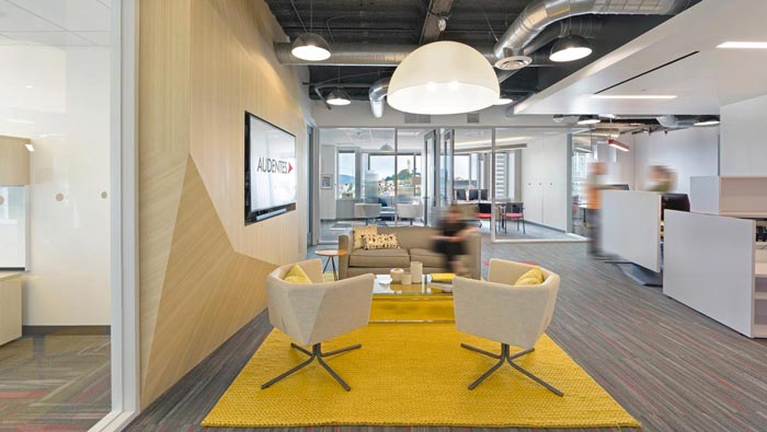 辦公區(qū)域的設(shè)計(jì):設(shè)計(jì)師在設(shè)計(jì)的時(shí)候,著重考慮了開(kāi)放式與封閉式的優(yōu)點(diǎn)與缺點(diǎn),在考慮再三之后設(shè)計(jì)師中和了相互之間的優(yōu)點(diǎn),以開(kāi)放式為一個(gè)大的框架、在其中包含封閉式的設(shè)計(jì),讓開(kāi)放與封閉之間形成一個(gè)很好的互動(dòng),讓開(kāi)放包含封閉、讓封閉互補(bǔ)開(kāi)放。