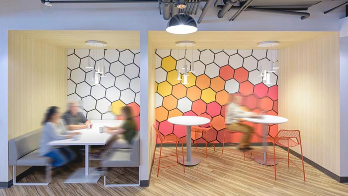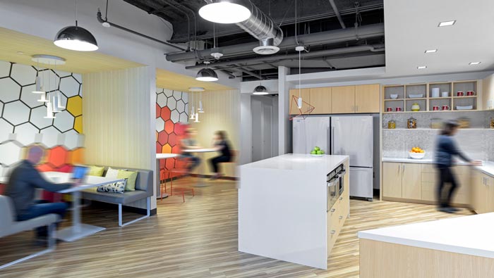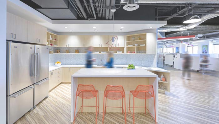 茶水間的設(shè)計(jì):設(shè)計(jì)師在設(shè)計(jì)的時(shí)候,將吧臺(tái)也融入其中,在設(shè)計(jì)師看來(lái)茶水間是企業(yè)的一個(gè)休閑場(chǎng)所,設(shè)計(jì)師希望在此處員工可以脫離現(xiàn)實(shí)的壓力、工作的壓力,在此處可以相互交流、彼此攀談,在此處可以忘卻壓力,可以在此處重新歸零。