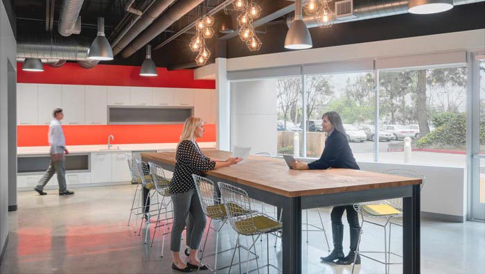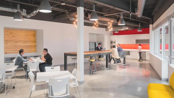 茶水間的設(shè)計(jì):設(shè)計(jì)師在設(shè)計(jì)的時(shí)候,將其與休息、交談區(qū)域融合在一起,這是設(shè)計(jì)師設(shè)計(jì)的一貫作風(fēng),因?yàn)樵谠O(shè)計(jì)師看來茶水間本身的氛圍就十分利于交談與休息,故此融合的空間是強(qiáng)強(qiáng)之間的聯(lián)合,既滿足了企業(yè)的需求,又在一定程度上提升了空間的質(zhì)量與屬性。