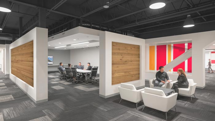 辦公區(qū)域的設(shè)計(jì):設(shè)計(jì)師在設(shè)計(jì)的時(shí)候,將交流區(qū)域、洽談區(qū)域、辦公區(qū)域融合在一起,這樣設(shè)計(jì)的目的就是希望加強(qiáng)各個(gè)區(qū)域之間的聯(lián)系,同時(shí)有效的提高辦公效率,開放式的格局設(shè)計(jì)也有效的加強(qiáng)了辦公效率,融合的空間也讓員工的辦公更加人性化。