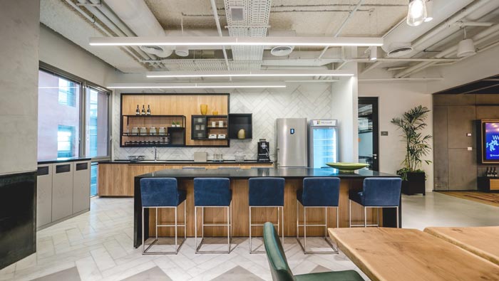 茶水間的設(shè)計(jì):設(shè)計(jì)師在設(shè)計(jì)的時(shí)候,將其安置在靠窗的空間之中,在空間的設(shè)計(jì)上設(shè)計(jì)師采用咖啡廳的設(shè)計(jì)手法,設(shè)計(jì)師主要是希望營(yíng)造咖啡廳式的空間氛圍,讓員工在此處可以遠(yuǎn)離工作的壓力,讓自身融入溫馨的空間之中,讓員工可以在此處休息、思考、歸零。