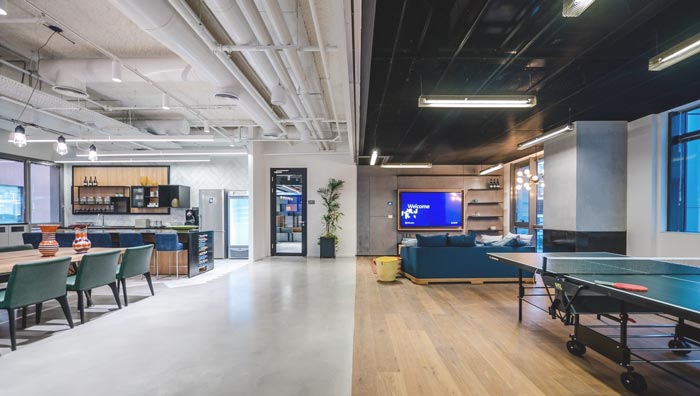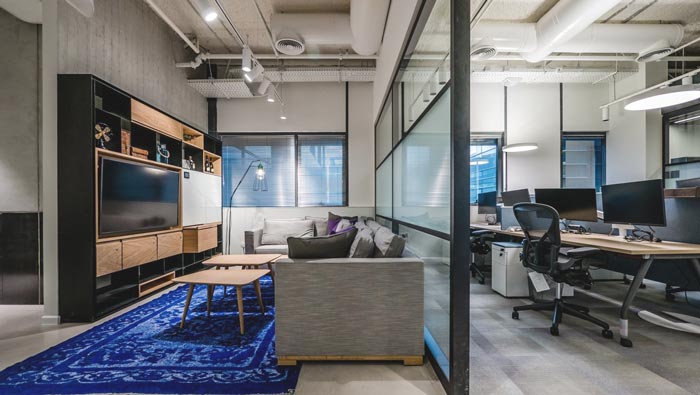 辦公區(qū)域的設(shè)計(jì):此次是一個(gè)獨(dú)立部門的辦公空間,在這里設(shè)計(jì)師考慮到部門的特殊性,故此將空間利用隔斷一分為二,交流區(qū)域、匯報(bào)區(qū)域合成一處,這樣的設(shè)計(jì)不僅提升了辦公的效率,而且在員工勞累的時(shí)候,此處也可轉(zhuǎn)化為休息區(qū)域,讓員工在這里休息。