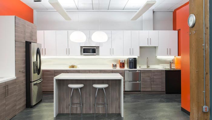 茶水間的設(shè)計:以廚房為原型做為設(shè)計參考,目的就是將空間打造成一個集辦公與家庭相結(jié)合的空間,讓員工在辦公的同時無時無刻都感受到家的溫馨,這樣對于企業(yè)的發(fā)展有很好的促進作用,設(shè)計師希望讓關(guān)心、溫暖成功企業(yè)的代名詞,讓關(guān)心、溫暖成為企業(yè)發(fā)展產(chǎn)品的動力與原則。