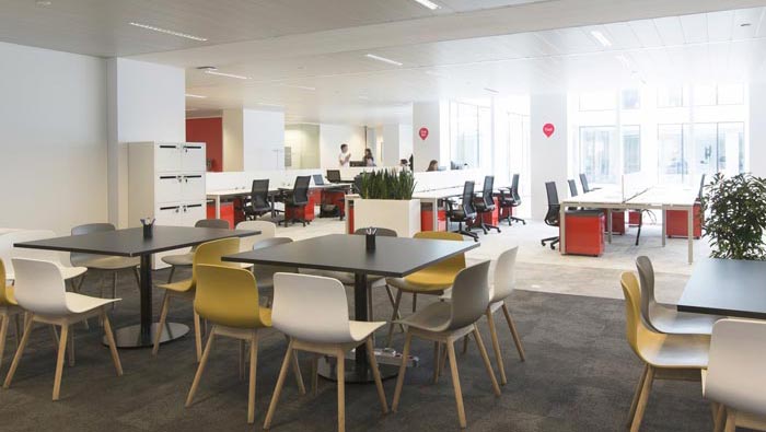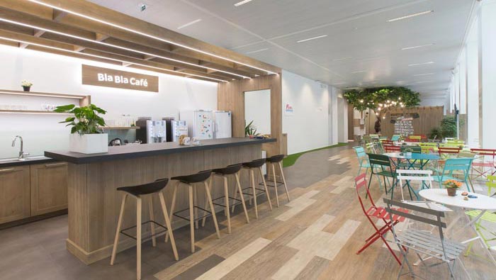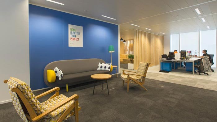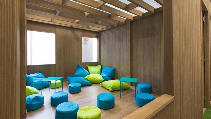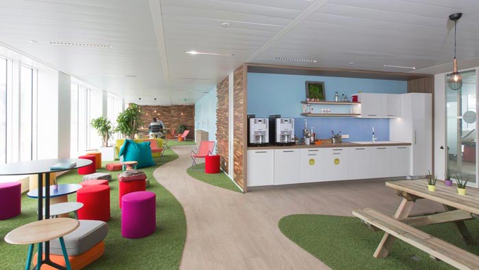 休息區(qū)域的設計:設計師在設計中參考了釋放的理念,也是設計師的一種嘗試,在設計師看來休息區(qū)域本來就是要為員工一個無壓力的空間,故此設計師將設計完全刪掉留下一個空空的空間,讓空間有了更多的可能,將軟裝引入空間,讓員工隨自己的愛好進行擺設,也為員工營造了一個無拘無束的空間。