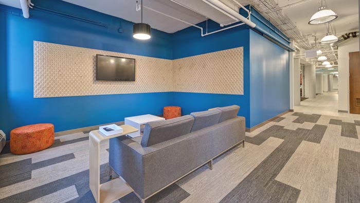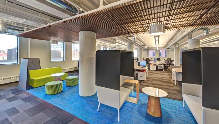 休息區(qū)域的設(shè)計(jì):設(shè)計(jì)師在設(shè)計(jì)的時(shí)候,將其安置在辦公空間的中心區(qū)域,此處的中心區(qū)域指的是兩個(gè)辦公空間之間的空曠空間,此處采用的與交流空間的設(shè)計(jì)類似,其一就是與空間進(jìn)行分離,其二就是與整個(gè)空間進(jìn)行搭配,在設(shè)計(jì)師看來這是勞逸結(jié)合的一個(gè)經(jīng)典配比。
