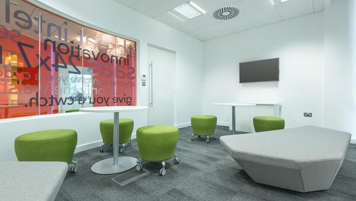 交流區(qū)域的設(shè)計:設(shè)計師在設(shè)計的時候,將其安置在一個獨立的空間之中,此處集合交流平臺、休息沙發(fā)與一體,設(shè)計師希望交流不要過于枯燥,此處別樣的設(shè)計就是希望彼此之間的交流可以輕松、愉快的進行,以朋友之間的交流方式來拉近彼此之間的距離,以求達到彼此之間的相互理解、相互包容。