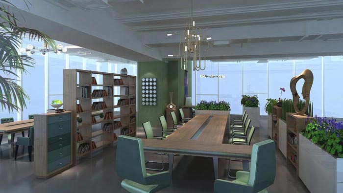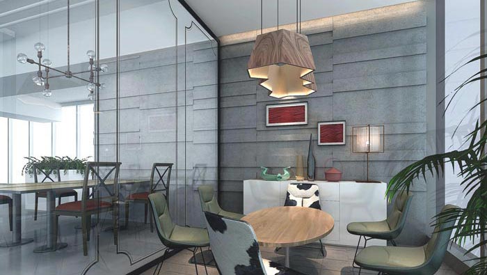 洽談室的設(shè)計(jì),設(shè)計(jì)師在設(shè)計(jì)的時(shí)候,將其安置在一個(gè)獨(dú)立的空間,同時(shí)靠近窗戶,設(shè)計(jì)師希望為洽談提供一個(gè)優(yōu)質(zhì)的空間環(huán)境,室外風(fēng)景的映射可以起到緩解洽談中遇到的各種問題,讓洽談可以順利進(jìn)行。