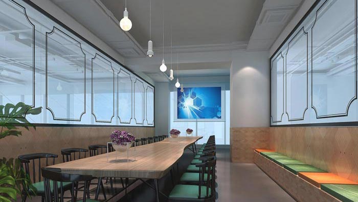 會(huì)議室的設(shè)計(jì),設(shè)計(jì)師在設(shè)計(jì)的時(shí)候,設(shè)計(jì)手法與辦公區(qū)域相同,不同的是排列順序,設(shè)計(jì)師在設(shè)計(jì)的時(shí)候?qū)⑵浒凑?ldquo;一字長(zhǎng)蛇陣”排列,緊隨空間而變,同時(shí)化缺點(diǎn)為優(yōu)點(diǎn),既滿足會(huì)議的需要,同時(shí)又靈機(jī)一轉(zhuǎn)增加空間的承載能力,真是化腐朽為神奇。