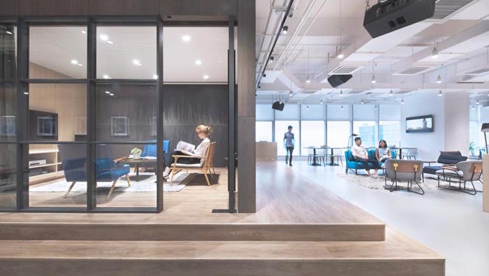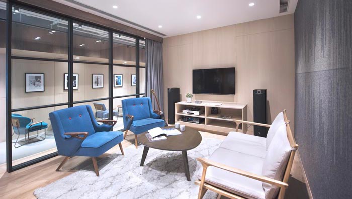 交流區(qū)域的設(shè)計(jì):設(shè)計(jì)師在設(shè)計(jì)的時(shí)候,對交流進(jìn)行了重新定義,因?yàn)樵谠O(shè)計(jì)師看來交流的前提就是無阻力、無障礙,故此設(shè)計(jì)師在設(shè)計(jì)的時(shí)候同樣采用極簡的設(shè)計(jì)手法,目的就是為了打造無阻力的空間,讓交流更加順暢。