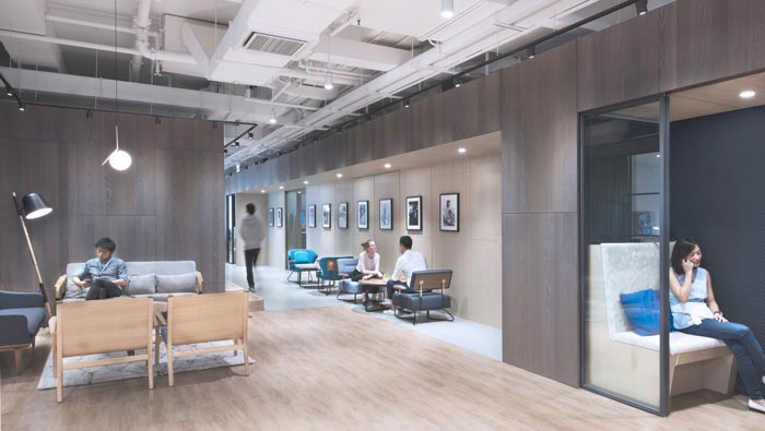 辦公空間的設(shè)計(jì):設(shè)計(jì)師在設(shè)計(jì)的時(shí)候,將辦公空間與休息區(qū)域相互融合在一起,這樣做的目的就是讓員工可以勞逸結(jié)合,辦公工位的設(shè)計(jì)也是以四人為一組,一組與一組之前以動(dòng)線相隔,這樣做的好處就是保證各個(gè)空間有一定的自由度,休息區(qū)域設(shè)置在窗邊,讓員工在此處既可以休息,也可以眺望遠(yuǎn)方取得靈感。