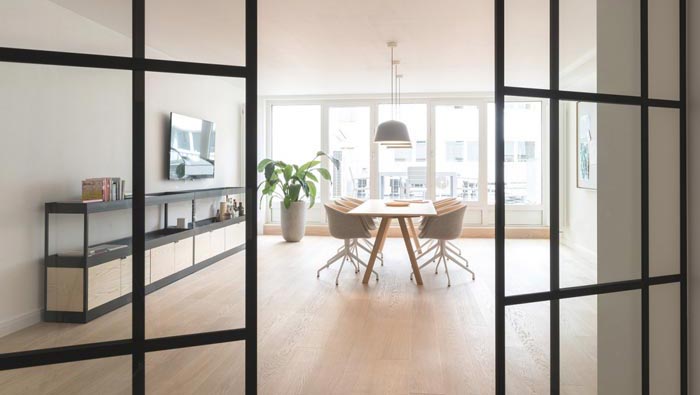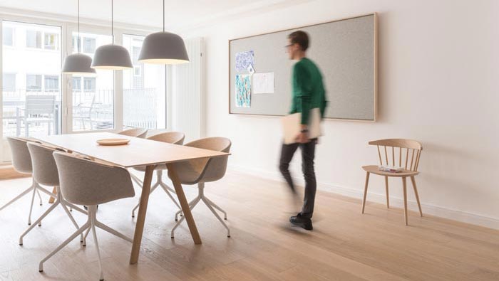 會(huì)議室的設(shè)計(jì):此處是一個(gè)多功能的辦公場(chǎng)所,此處與外部陽臺(tái)連接在一起,這樣可以避免會(huì)議的單一性,因?yàn)闀?huì)議在很多人眼中單調(diào)、無味的,故此會(huì)議往往會(huì)起到消極的作用,故此設(shè)計(jì)師將會(huì)議室與陽臺(tái)相互串聯(lián),就是希望以陽臺(tái)的自然與開放,為會(huì)議提供更多的可能性。