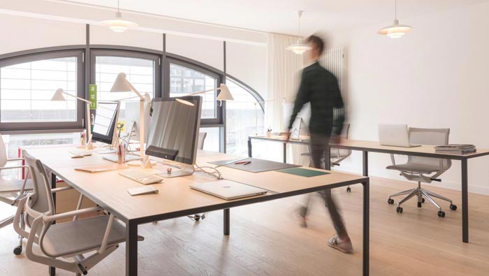 辦公區(qū)域的設(shè)計(jì):設(shè)計(jì)師在設(shè)計(jì)的時(shí)候,考慮到空間的面積有限,故此在設(shè)計(jì)中盡量避免增加空間的負(fù)擔(dān),故此在辦公桌的選擇上面設(shè)計(jì)師采用最簡(jiǎn)單的排列方式,以單雙的方式進(jìn)行排列,這樣的排列方式一方面可以滿足企業(yè)對(duì)于工位的需求,另一方面也可以保證空間的通暢。