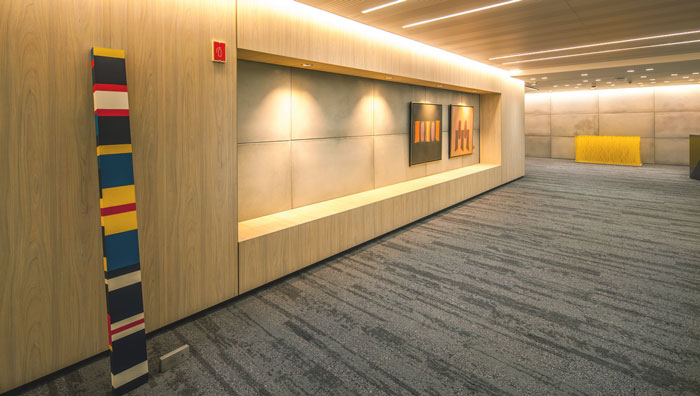 金融辦公室過道的設(shè)計(jì):此處位于前臺(tái)與辦公區(qū)域連接的真空區(qū)域,同時(shí)也是客戶進(jìn)入空間的必經(jīng)之路,設(shè)計(jì)師以通暢做為整個(gè)空間的唯一屬性,目的就是希望客戶可以順暢的進(jìn)入室內(nèi),同時(shí)也有業(yè)務(wù)順暢之意。