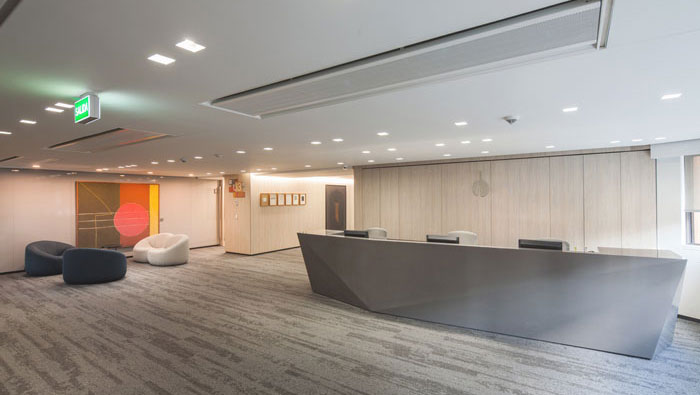 金融辦公室前臺(tái)設(shè)計(jì):前臺(tái)是客戶進(jìn)入空間的第一場(chǎng)地,也是企業(yè)與客戶最先接觸的一個(gè)區(qū)域,故此設(shè)計(jì)師將前臺(tái)定位為簡(jiǎn)潔、大氣,如何一來既體現(xiàn)了企業(yè)的實(shí)力,同時(shí)簡(jiǎn)潔的空間與客戶也形成了良好的互動(dòng)。