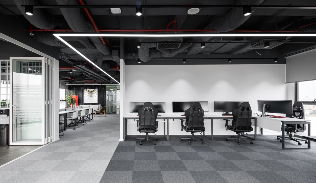 在辦公室中,工作區(qū)分為兩個(gè)主要分區(qū),一個(gè)是PC用戶的固定工作區(qū),另一個(gè)是筆記本用戶的可定制區(qū)域。這兩個(gè)區(qū)域由一個(gè)可移動(dòng)的玻璃門系統(tǒng)隔開,使用戶可以將其用于他們的工作,并與其他團(tuán)隊(duì)交換。