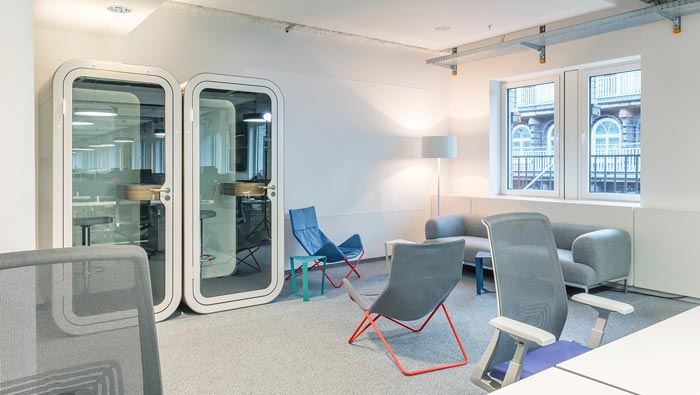 會(huì)議室的設(shè)計(jì):企業(yè)的文化就是任何問題都在內(nèi)部解決,所以對(duì)于會(huì)議室就有很高的要求,此處僅為空間的冰山一角,設(shè)計(jì)師利用了一個(gè)小小的物件——轱轆,就讓整個(gè)空間擁有了活性,空間可以根據(jù)需求自主的形成每一個(gè)形狀,一切都是可操作性的,代行會(huì)議室只需要將桌子進(jìn)行重組就可以,方便又便捷。