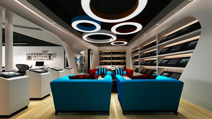 洽談區(qū)域的設(shè)計(jì),設(shè)計(jì)師在設(shè)計(jì)的時(shí)候,以洽談與展示為主要的兩個(gè)方面,展示區(qū)域包圍著洽談區(qū)域,在展示自身企業(yè)文化的同時(shí),以半包圍的方式給客戶以溫馨、舒適的空間氛圍,為接下來的洽談起到鋪墊作用。