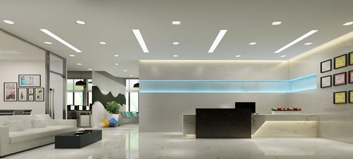 前臺(tái)區(qū)域的設(shè)計(jì),設(shè)計(jì)師在設(shè)計(jì)的時(shí)候,對(duì)前臺(tái)的空間采用極簡對(duì)空間進(jìn)行劃分,在保證空間的基本需求之內(nèi),還需要保證企業(yè)的形象在此處得以充分的展現(xiàn)。