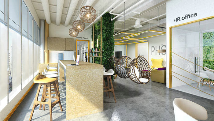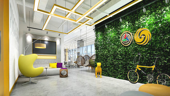 接待區(qū)域的設(shè)計(jì):設(shè)計(jì)師在設(shè)計(jì)的時(shí)候,采用室內(nèi)與室外相結(jié)合的方式,此處的室外指的是對(duì)進(jìn)門區(qū)域的合理運(yùn)用,設(shè)計(jì)師通過軟裝對(duì)空間進(jìn)行進(jìn)一步的設(shè)計(jì),一方面不影響整個(gè)空間的運(yùn)行,另一方面為企業(yè)增加新的接待方式。