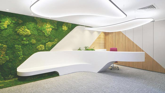 科技公司辦公室前臺(tái)設(shè)計(jì):設(shè)計(jì)師在設(shè)計(jì)的時(shí)候,對(duì)空間采用了極大的留白性,設(shè)計(jì)師以企業(yè)品牌與企業(yè)文化為主題,設(shè)計(jì)師希望為企業(yè)帶來(lái)與眾不同,又兼具實(shí)用的雙重空間。