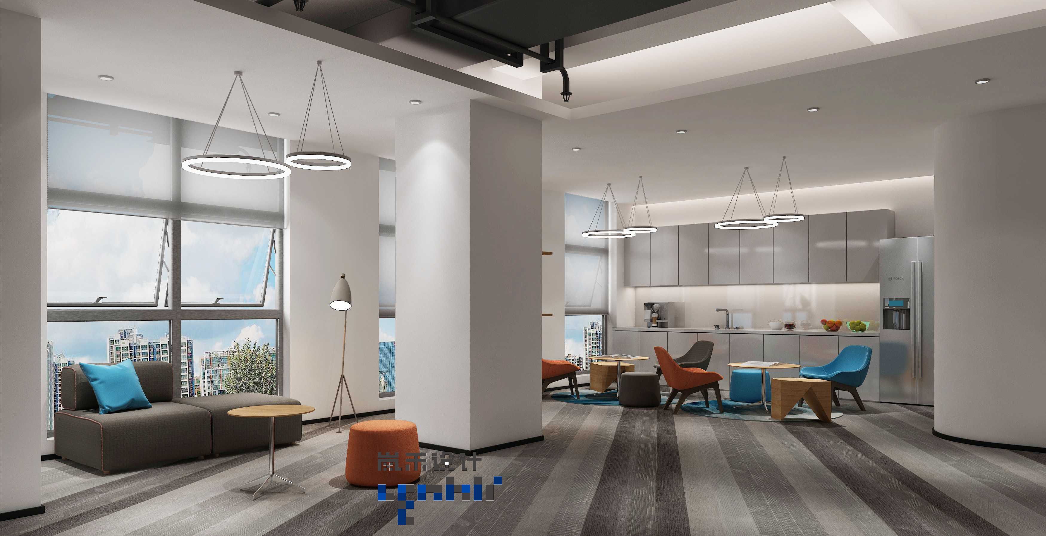 茶水間采用多種色彩搭配,目的是在工作之余能夠放松身心,開放式的設(shè)計(jì)讓人與人的交談變得更加親近。