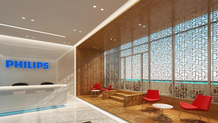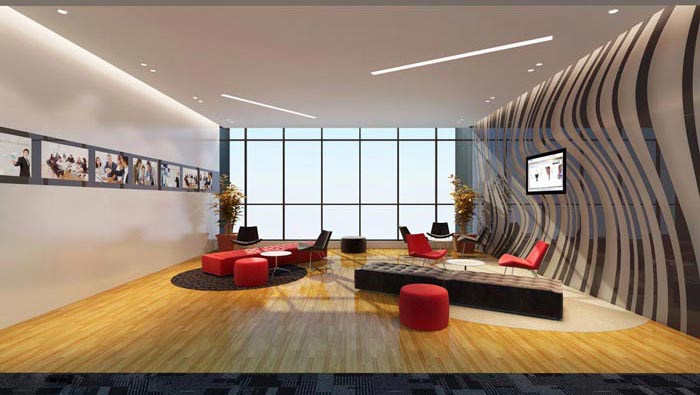 接待區(qū)域的設(shè)計(jì),最大的亮點(diǎn)就是背景墻的設(shè)計(jì),真是科技感十足。