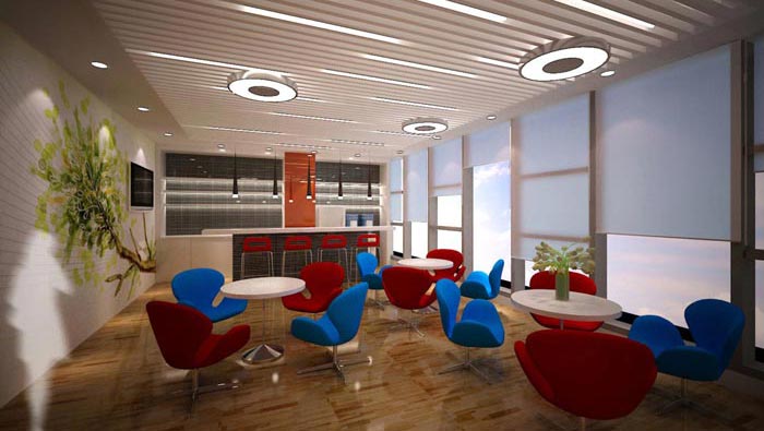 休息區(qū)域的設(shè)計(jì),設(shè)計(jì)師將茶水間與休息區(qū)域相結(jié)合,即保證空間的最大利用,也保證空間的協(xié)調(diào)性。