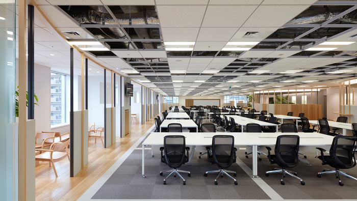 國際貿(mào)易公司辦公室辦公區(qū)設(shè)計:整個辦公區(qū)就是一個開放的辦公區(qū)域,設(shè)計師在此基礎(chǔ)上進(jìn)行了優(yōu)化,設(shè)計師按照比例分布在空間之中,目的就是希望整個空間井然有序。
