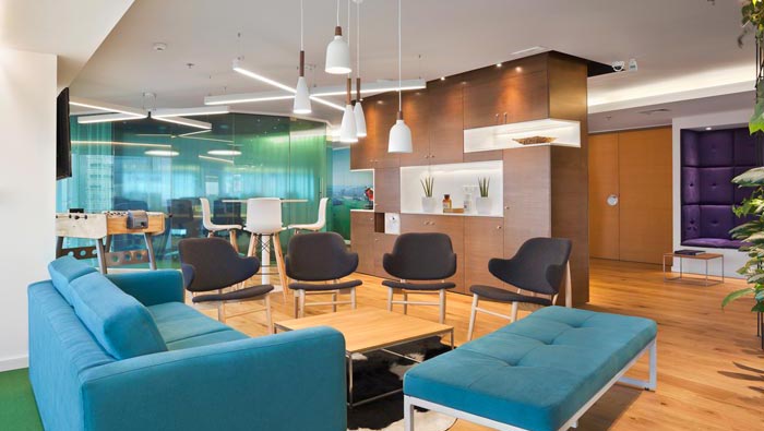 辦公區(qū)域的設(shè)計(jì):設(shè)計(jì)師在設(shè)計(jì)的時(shí)候,采用不規(guī)則的辦公布局,在設(shè)計(jì)師看來這樣的設(shè)計(jì)可以各取所長(zhǎng)、各補(bǔ)所短,在開放空間布局的同時(shí),為每一個(gè)員工打造一個(gè)屬于自己的私人空間,不規(guī)則所打造的辦公空間,讓空間充滿了活力。